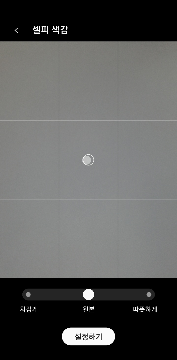 셀피 설정에는 보이는대로 셀피 저장, 셀피 색감 설정이 있습니다. 보이는대로 셀피 저장은 활성화 시 셀피와 셀피 동영상을 좌우 반전 없이 그대로 저장할 수 있습니다. 셀피 사진을 많이 찍으시는 분들은 사진이 좌우 반전되어 나온다면 이 기능을 활성화하면 보이는대로 사진이 저장됩니다. 이 기능도 모르면 사용 못하는 기능입니다. 셀피 원감을 누르면 셀피 사진을 원본, 차갑게, 따뜻하게 찍을 수 있습니다.